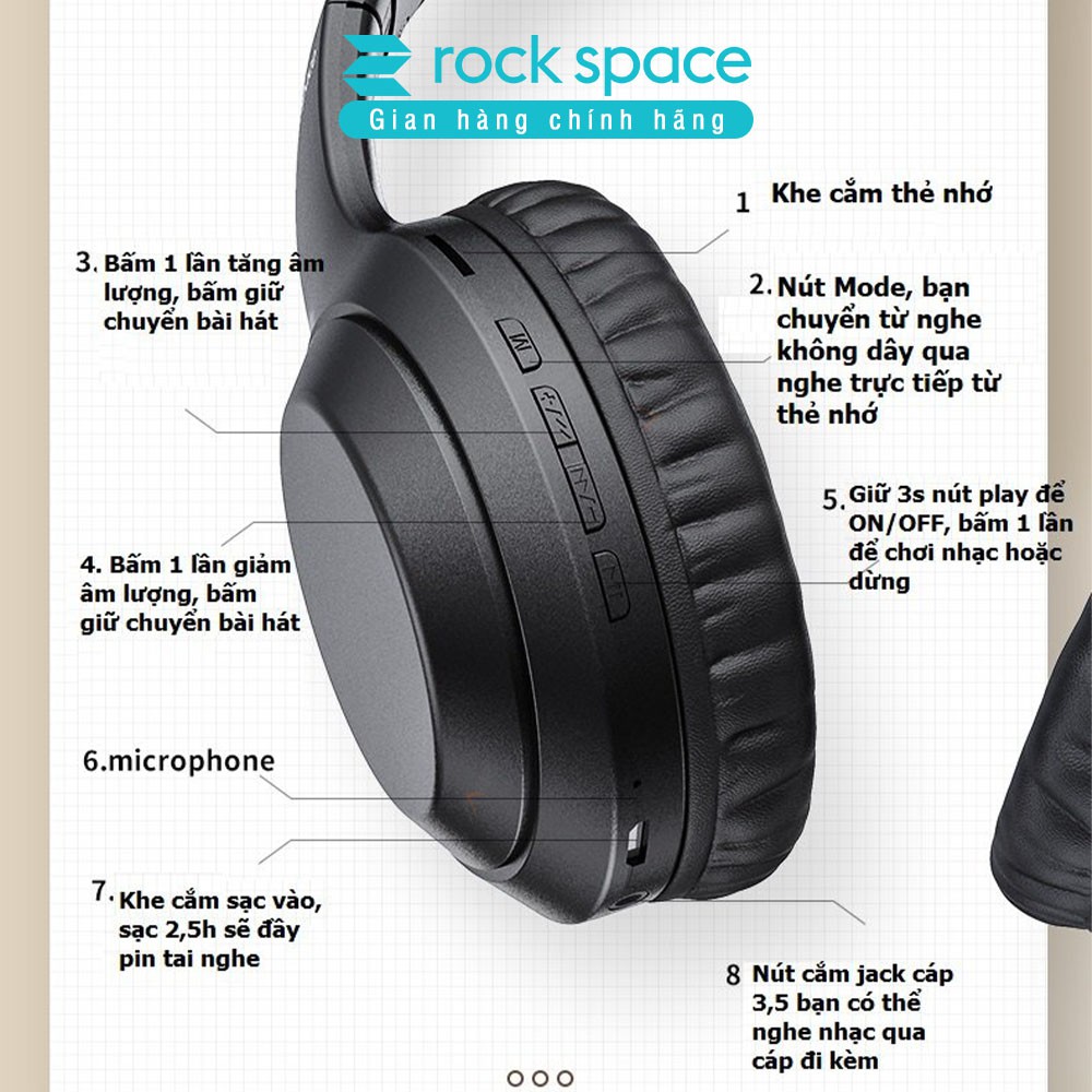 – Tai Nghe bluetooth Headphone không dây chụp tai Rockspace O2 âm thanh cực hay, thời gian chơi nhạc liên tiếp 15h